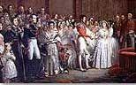 Royal Family. The Speaker of the House of Commons, the Master of the Rolls and the Vice-Chancellor, went in state and were presented on their late appointments. The Austrian Ambassador, the Spanish Ambassador, accompanied by his lady, and the American Plenipotentiary with his lady, severally went in state. Mrs Rush, the wife of the American Minister, was presented to the Queen by Lady Castlereagh. Mr Smith and Mr Taylor, attached to the embassy were presented by his Exellency. The Prince of Hesse-Homberg was presented to the Queen by Lord Stewart, our Ambassador to Vienna, but who is now at home on leave. There were present, the Lord Chancellor and the Regent's cabinet ministers, the Great Officers of State, the Lord Mayor and Lady Mayoress of London, Mr Sheriff Desagne, Mr Sheriff Alderson, the Attorney General, the Solicitor General, the Dean of Windsor, the Dean of Westminster, the Provost of Eton, the Archbishop of Canterbury, the Archbishop of York, the Lord Primate of Ireland &c." (Source: The Times of February 27th 1818) |