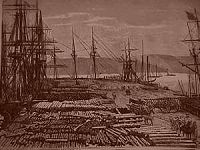Robert Albion writes in "Forests and Sea Power" : "The excessive cost of freight from Canada meant old decrepit ships unfit for any other service ended their days bringing Canadian timber to England. Many of them ended their careers under tragic circumstances. The desire for profits extended to burdening the ships with heavy deckloads of timber; and when the owners tried to get three round trips out of their vessels, the casualties in winter seas were notoriously heavy." |