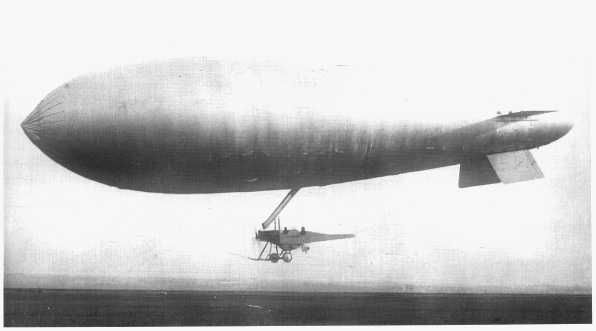 Note: The car suspended below is a Be2c plane with the wings and tail removed.